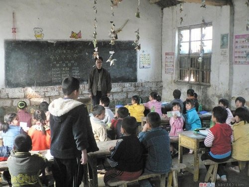 有錢了,學校變了,第一個月,買了黑板,修了屋頂。